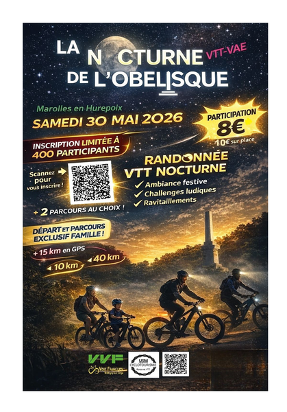 Site web/ inscriptions : https://www.helloasso.com/associations/usm-section-cyclotourisme/evenements/la-nocturne-de-l-obelisque-2026-1