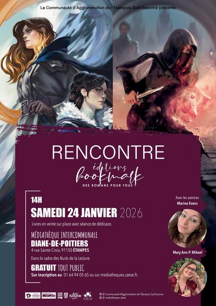 Rencontre avec les Editions Bookmark et les autrices Marina Evans et Mary Ann P. Mikael, vente de livres sur place par la librairie Les échappées et dédicaces !