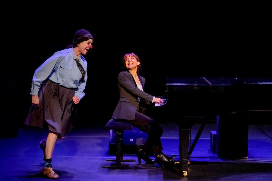 Emma la clown, accompagnée de Nathalie Miravette, chante les chansons d’Anne Sylvestre.